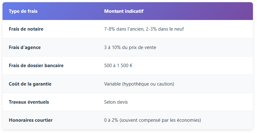 Attention : le prix affiché du bien n'est que la partie visible de l'iceberg. Voici tous les frais à intégrer dans votre budget :