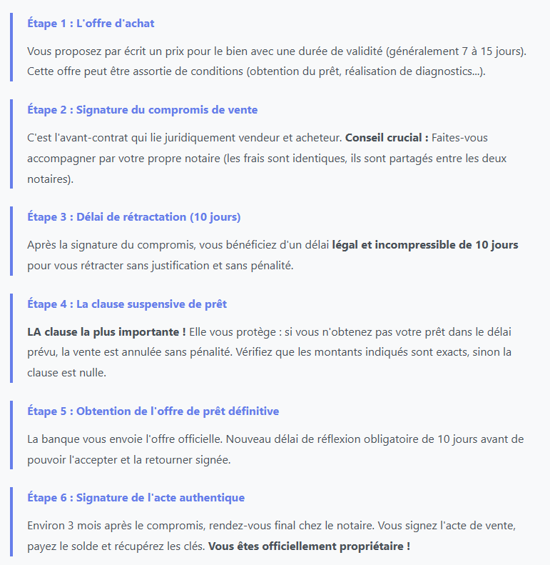 Anticipez les délais (comptez 3-4 mois du compromis à l'acte final)